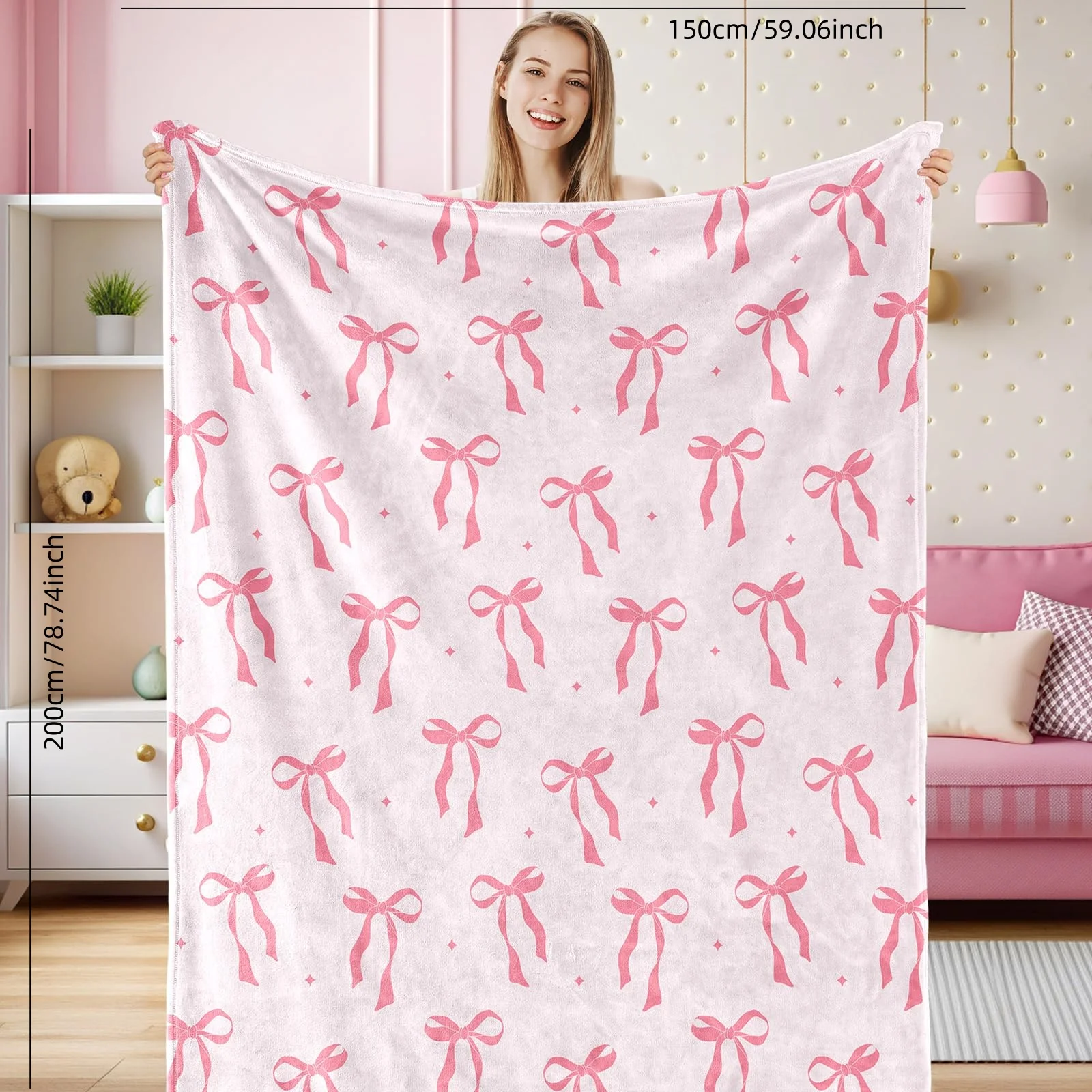 Pink Bow Fuzzy Blanket